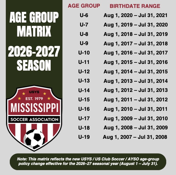 Following extensive review and discussion, US Youth Soccer, AYSO, and US Club Soccer have collectively decided to move to an age group player formation cycle that runs from August 1 to July 31, starting with the 2026-27 season/registration year. This change was made based on additional critical feedback, data, and expert input to better align players with their school-grade peers.